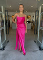The Aura Dress is cut from a luxe satin and features a soft contrast georgette overlay detail across the bust and down to the floor. The bodice showcases a simple scoop neckline and gathers at the waist. We incorporated our signature thigh high split for a sexy yet elegant look.