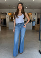 The Levi's Ribcage Bell is a super high rise jean with a bell leg from the thigh all the way to the hem. These jeans are extremely comfortable and stylish.