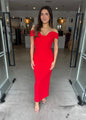 Turn heads in the Modernist Maxi Dress in Red — a sculptural silhouette that blends refined simplicity with modern edge. Crafted from premium matte crepe frabrication, it features a waved off-the-shoulder neckline with boning for structure and support. The sleek column fit is fully lined for a flawless finish, while an invisible centre-back zip and back split ensure ease of movement. Sophisticated and striking, it’s an unforgettable choice for any formal event.