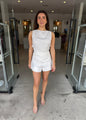 The Elnaz Top is made from a premium viscose Crepe de Chine fabrication that has a dry, drapey hand feel. The silhouette is boat neck, draped top with length finishing below the hip. Features include a high draped neckline with tucks at shoulders, a cinched waist with draped tucks and an asymmetric hem.