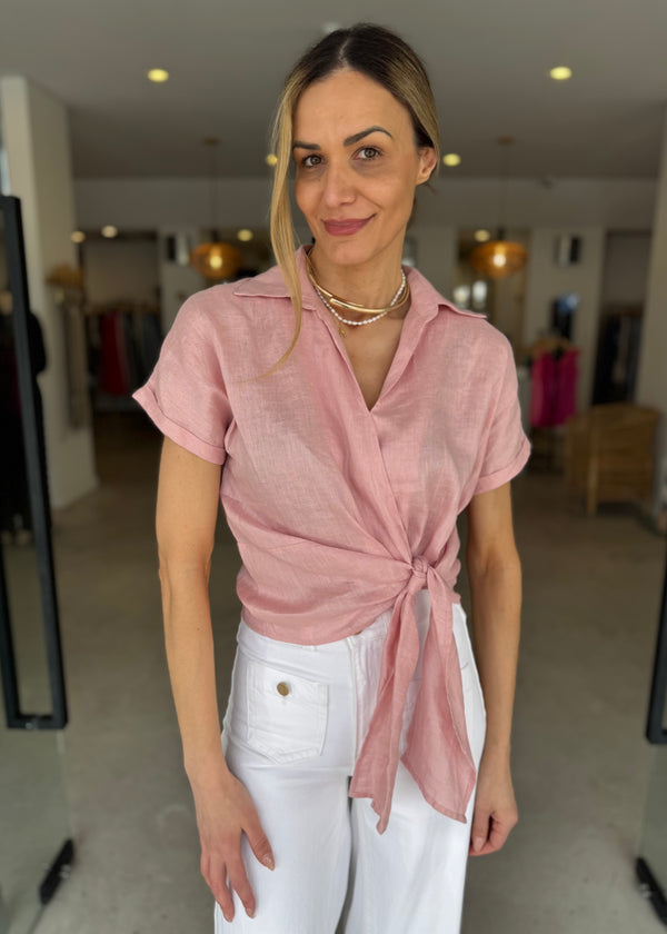 Romantic and feminine, this stunning wrap blouse featured in a wrap-style silhouette with short sleeves and ties. Crafted with a beautiful linen this effortless shirt refreshes your linen basics to give your outfit that Oriental-inspired edge. Endlessly flattering it will be your talking point.