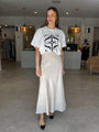 The Lagos White Linen Blend Bias Maxi Skirt by Re:Union Label is crafted from a washed linen blend for breathable comfort. Designed with a flattering bias cut and an elastic waistband, this maxi skirt balances comfort with a flattering shape. Fully lined for a smooth finish, this maxi skirt can be styled casually with a tee or elevated with a blazer for evening wear.