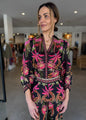 The Anthos Lótos print bursts with vivid pinks, lush greens, and warm earthy undertones, intricately placed to flatter the silhouette. Designed with puff sleeves, elasticated cuffs, and a subtly cropped hem, this blouse channels modern femininity while retaining a timeless bohemian spirit.