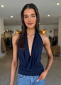The BEC + BRIDGE Sonnie Halter Top in Ink is a sleek, statement style cut from soft stretch jersey fabric. Featuring a low cowl neckline and open back, this top is designed to flatter with a fitted waist and a hem that finishes at the low waist. The Sonnie Halter Top is the perfect piece to elevate any evening look.