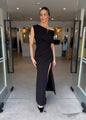 Crafted from high-quality stretch suiting fabrication, this gown ensures comfort while maintaining an elegant, structured fit. The gown features a side split that adds a touch of drama and sensuality, perfect for walking the red carpet or attending a formal event. An invisible side seam zipper makes for a smooth and seamless finish, while the fabric's soft stretch provides movement and flexibility. Whether you're attending a gala, wedding, or upscale evening, the Kourtney Asymmetrical Gown is an essential addition to any wardrobe, effortlessly combining comfort, style, and sophistication.