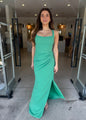 Step into elegance with the Elena Gown designed to sculpt and accentuate the female form. The full-length gown exudes timeless sophistication, featuring a structured bodice with a 90's inspired square neckline and a curved under bust pipping detail. The draping cascades gracefully along the waist, leading to a cross over split that can be worn either closed or open. Made from our premium stretch bonded crepe fabric.