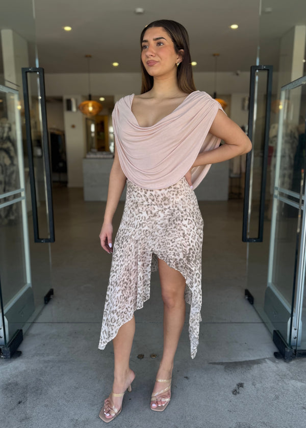 Introducing our Flora bodysuit - designed in a soft stretch fabric, it features a draped cowl neckline and a matching low back detail that exudes subtle sophistication.