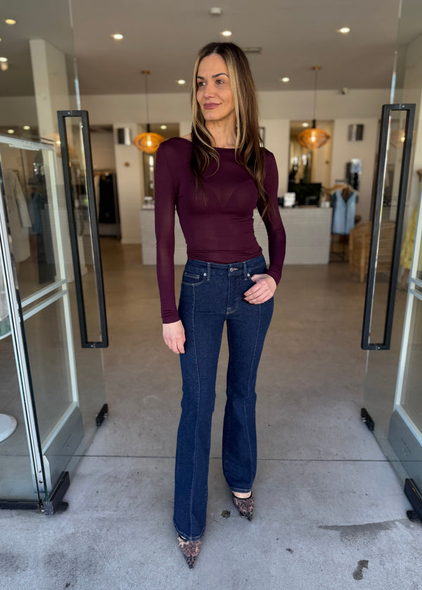 Super sexy high-rise jeans with a long slim fit featuring modern bootcut legs.