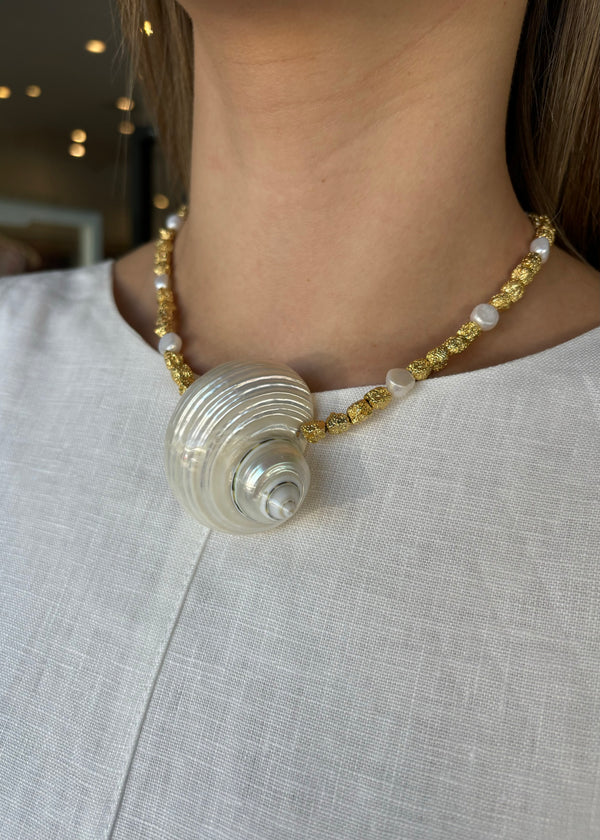 Embrace the ocean's beauty with our PARADISO Necklace! Crafted from luxurious gold vermeil, this stunning necklace features a conch shell pendant that will transport you to the seaside.
